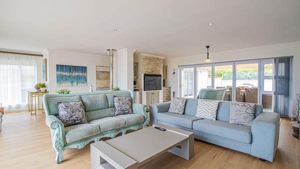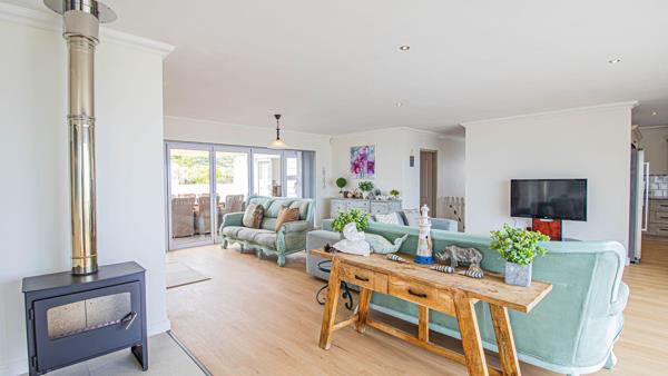 A sense of calm greets you the moment you step inside. The open-plan living areas are filled with natural light, flowing seamlessly onto wooden decks on both sides of the home. From morning coffee overlooking Dassen Island to sunset dinners outdoors, every moment feels connected to the sea. The indoor built-in braai and wood-burning fireplace make the space inviting throughout the seasons, while the thoughtful layout encourages easy entertaining and quiet retreat alike.