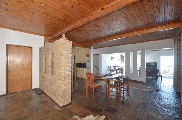 This facebrick home seamlessly blends comfort and spaciousness, offering the perfect retreat. Step inside and discover a light-filled haven featuring an open-plan living area. The inviting lounge with a fireplace beckons cozy nights, while the dining area and well-equipped kitchen create a perfect space for entertaining. Imagine unforgettable evenings spent on the outdoor braai area, all while soaking in the panoramic sea views.