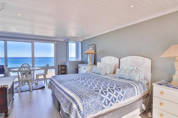 Descend the staircaseframed by picture windows that showcase the oceanto the lower level, where the main suite impresses with its own coffee station/kitchenette, ample built-in cupboards, tiled floors, and sliding doors that open onto the ocean-facing patio. The luxurious en-suite bathroom includes a bath, shower, toilet, and basin, fully tiled from floor to ceiling.