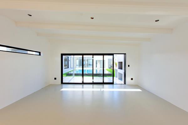 Step outside to a picturesque setting with a heated infinity pool and meticulously landscaped gardens, ideal for year-round relaxation. Upstairs, the family room with a kitchenette provides panoramic views from Table Mountain to Dassen Island, perfect for unwinding or entertaining guests.