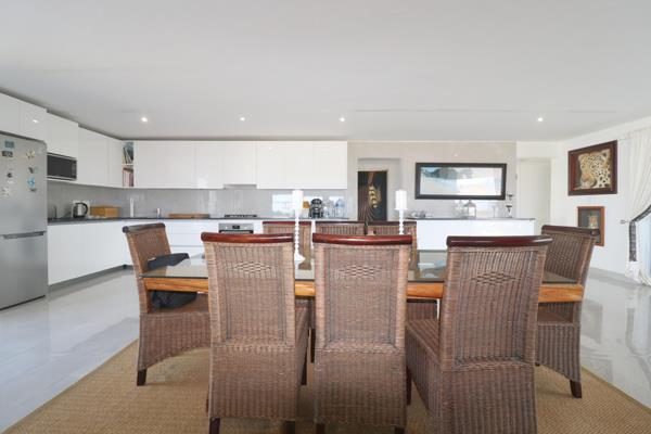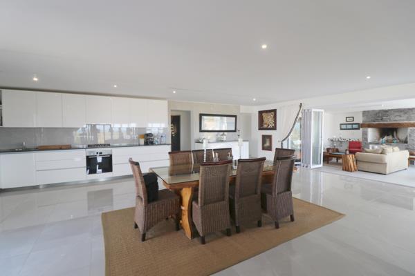 Boasting a spacious, open-plan living area, this home offers a seamless flow between the kitchen, dining, and lounge areas, which open out onto the garden through wall to floor stacker doors. Enjoy uninterrupted sea views and views of Table Mountain that stretch across the protected greenbelt. The lounge is complete with a built-in bar, fireplacebraai, perfect for entertaining or cozy evenings by the fire.