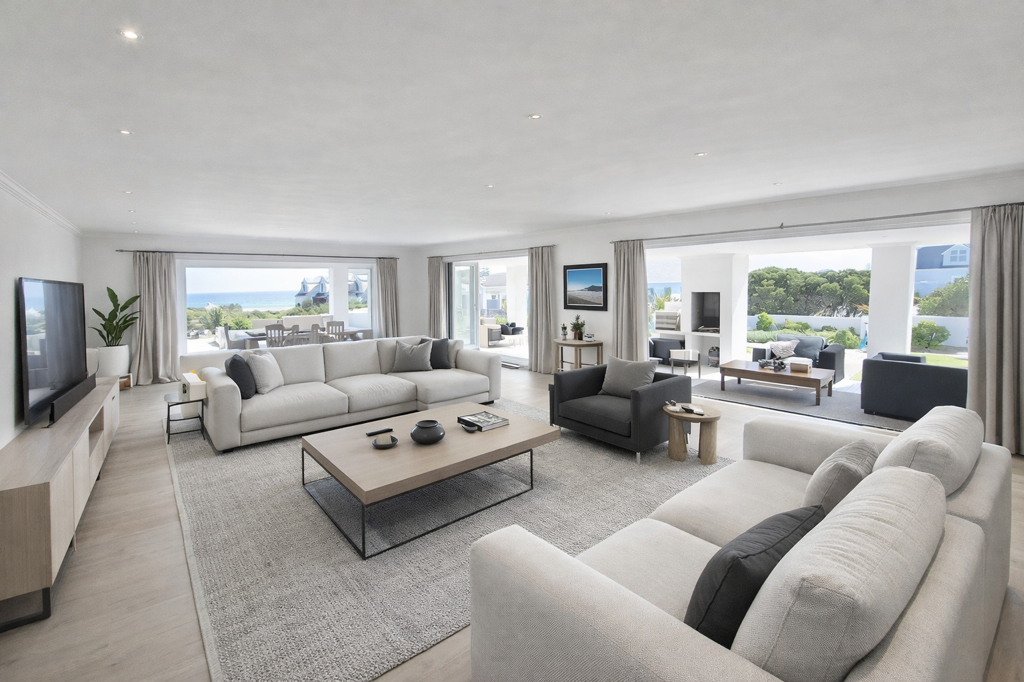 Set within the unspoilt beauty of the Grotto Bay Private Nature Reserve, this exceptional coastal residence offers a rare combination of refined luxury, absolute privacy, and awe-inspiring natural surroundings. Newly renovated and positioned just 400 metres from the beach, the home spans an impressive 550 sqm on a 917 sqm erfdesigned for effortless living and elegant entertaining.