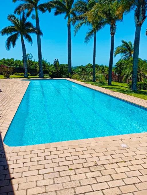 Access to an Olympic-sized swimming pool surrounded by lush palm trees