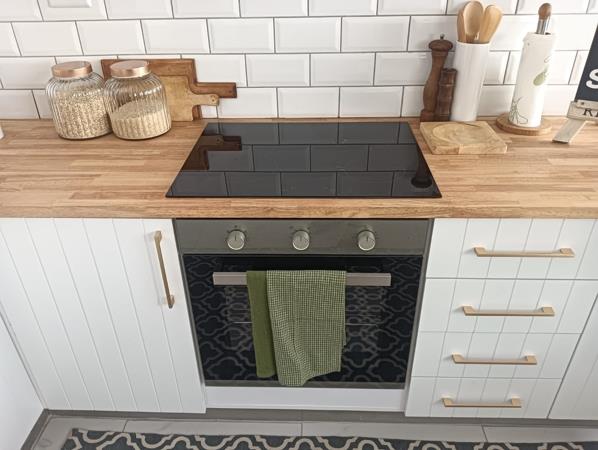 Newly renovated kitchen with plenty of cupboards and built in stove with undercounter oven.
