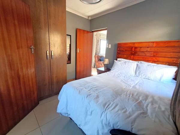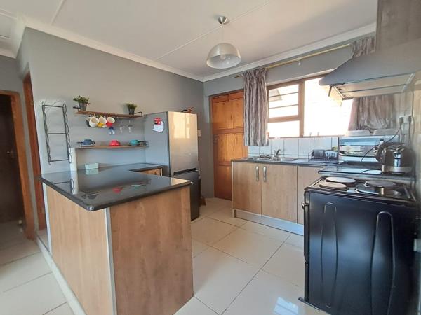 Upon entry into the house, you are welcomed by the intimate lounge area leading into the kitchen, fitted with built-in cupboards, stove and extractor fan. The 2 bedrooms are tiled, fitted with built-in cupboards and share the family bathroom. The family bathroom is tiled and fitted with a bath with a shower head, basin and toilet. The main bedroom is also tiled, fitted with built-in cupboards and has it''s own en-suite bathroom fitted with a shower, basin and toilet.