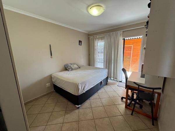 The townhouse features three generously sized bedrooms, all with built-in cupboards for ample storage. There are two bathrooms, each equipped with a toilet, basin and shower. The main bedroom has the added convenience of an en-suite bathroom for extra privacy and comfort.
