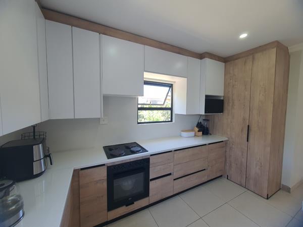 Stunning kitchen with modern finishes, an open plan kitchensitting area. A full bathroom and 3 bedrooms with built-in cupboards. The main bedroom has a separate toilet and basin as an en-suite.