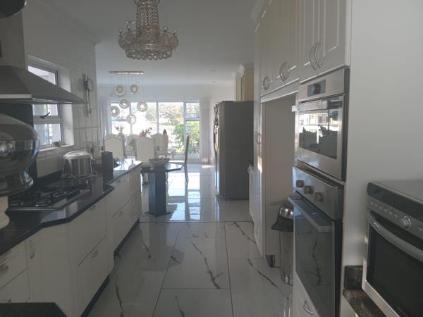Large open-plan lounge and dining area leading onto a wraparound balcony with built-in braai perfect for entertaining