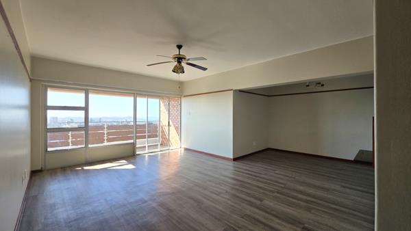 Laminated floors throughout the unit with a Lounge and dining room with a balcony