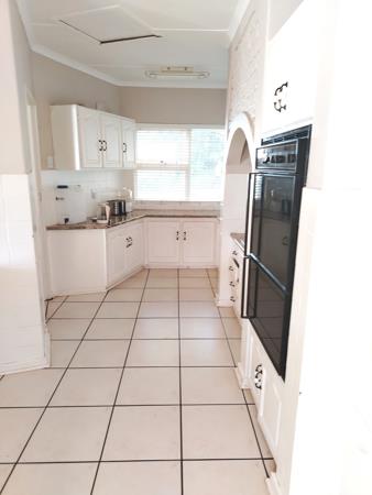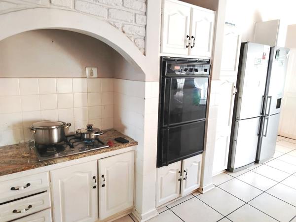* Double garage, helpers room with bathroom, covered storage area with water pumped straight from the storage tank and solar geyser.
