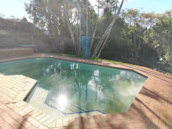 * Partially enclosed patio with built in braai overlooking the garden and swimming pool