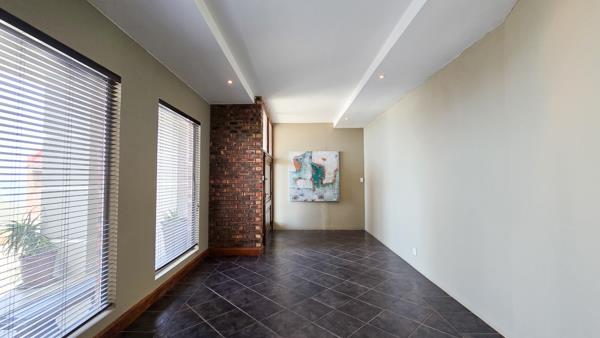 The spacious open plan living area has ample space for lounge, dining area as well as a built-in bar, the sliding doors all around open onto the balcony and the back garden.
