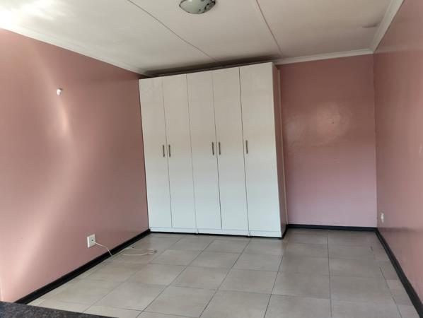 A cosy nice nice bachelor flat in a quiet and safe yard ,,The room is an open bachelor with a modenised kitchen cupboards and wardropes ,also there is inlet for washing machine and a spacious bathroom that have a shower sink and the toilet ,also there are back up tanks.Its only few steps to the main road,very close to amminities,schools and shops.