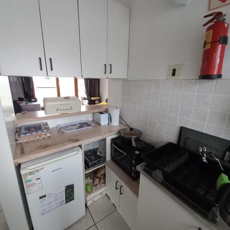 Kitchen equipped with under counter fridge and two plate stove/oven combo. A cupboard unit (currently used as a TV cabinet) and desk Secure off-street parking. Prepaid electricity. Water included (with water tanks).