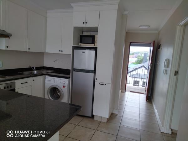 The kitchen comes equipped with a fridge, stove, washing machine. .