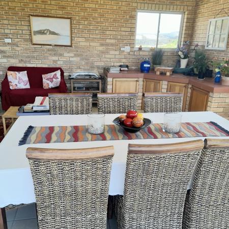 The top entertainment area offers an excellent view to enjoy daily. Consisting of braai area, enough seating for 14 guests around the table and an absolutely breath-taking view. Stacking windows to be opened while smelling the braai and sea at the same time.
