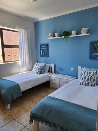 The space is an open plan kitchen, living area and TV room. Double bedroom with built-in cupboards as well as two single beds in a separate bedroom with built-in cupboard. There is a secure parking space behind an electric gate.