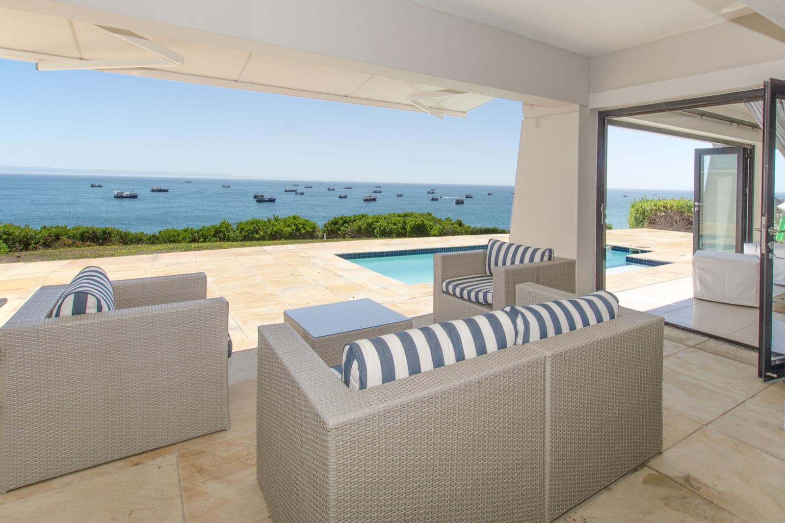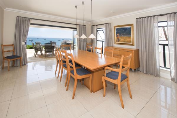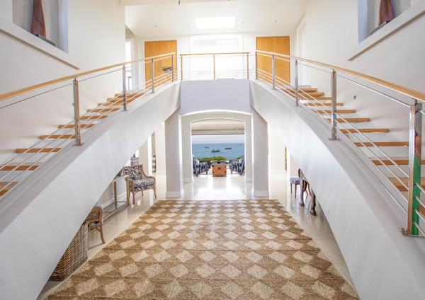 Downstairs you will find 2 lounge areas, open plan kitchen, scullery and dining area. The garden area is very spacious with the most beautiful views, a walkway leads from the garden to a deck platform area where you can sip sundowners and watch the dolphins swim past