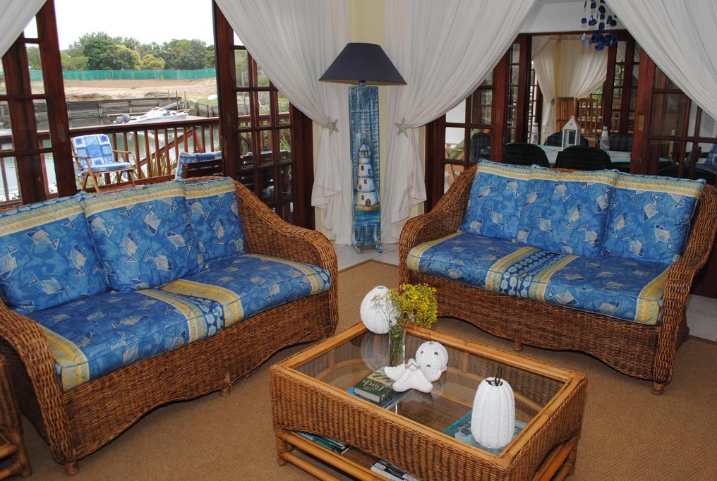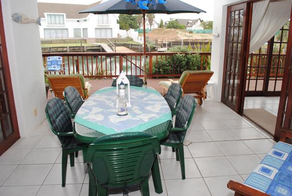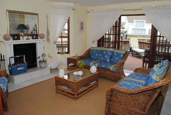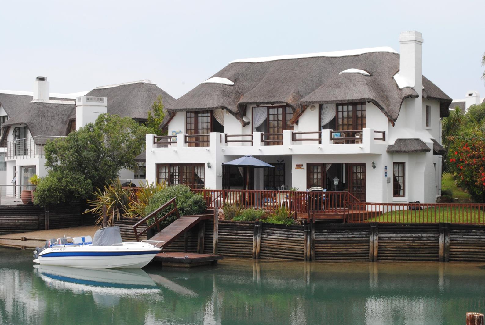 This is a double storey thatch house with 4 bedrooms and 3 bathrooms, 2 rooms are en-suite. There are double beds in 3 bedrooms and 2 double beds in the 4th room (sleeps 10). It has cottage pane windows and modern decor. The deck spans the front of the house overlooking the canals and has a jetty with a little beach.