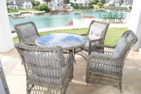 Both lounges have a gas fireplace creating a lovely ambiance while the entertainment area outside overlooks the waters of the Canal. The kitchen is open plan, modern and bright with all necessary amenities: granite counter tops, gas hob with oven and extractor fan, dishwasher, washing machine and breakfast nook. The dining room is gorgeous with stack doors that open it up to the outside entertainment area with built in braai, this area has a small garden area perched above the Canals with access to a private jetty.