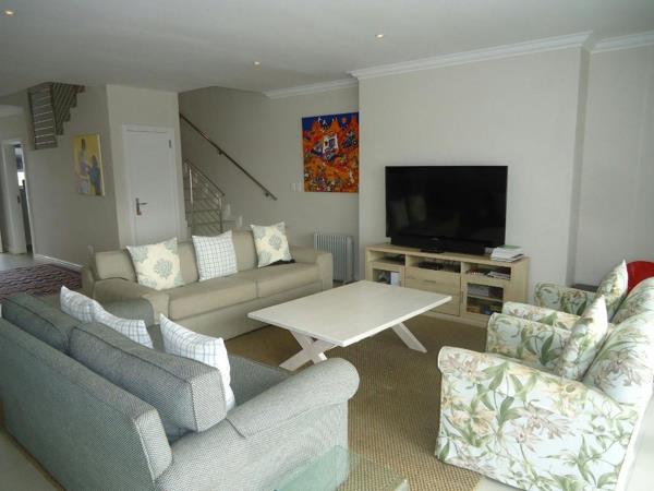 Upon entry you are welcomed into the bright and airy living areas, including a lounge with comfortable seating for six and full DSTV, then a dining area with a table for six, this leads out onto an expansive balcony which further leads down to a communal garden and the jetty. There is a guest loo downstairs for your convenience. The kitchen is modern and fitted with all the essentials and more! There are granite counter tops, a breakfast nook with space for four and a gas hob complete with extractor fan and oven.