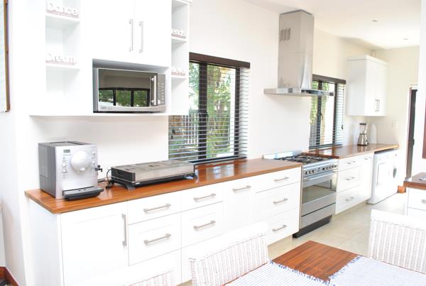 The beautiful dining table seats 10, with another table on the deck with seating for 10 as well. The kitchen is fully equipped, with a Gas stove with electric oven, microwave and coffee machine. The scullery area has a dishwasher, washing machine and dryer.
