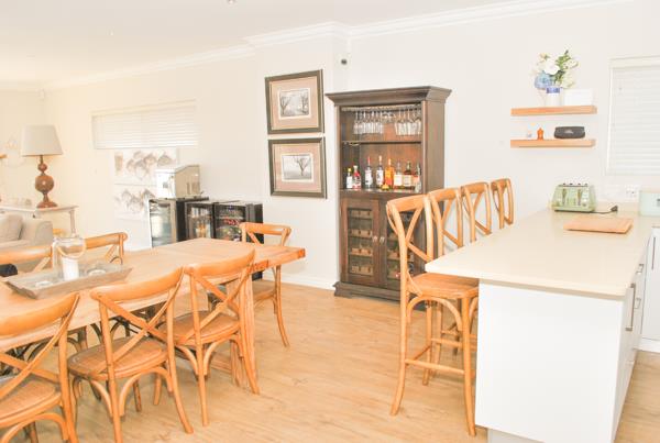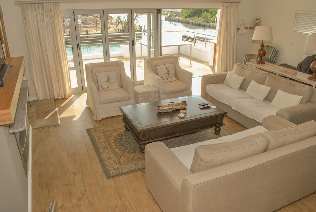 The spacious open plan kitchen and living area is downstairs, with stacker doors opening up to the deck and canal in front of you, allowing for seamless indoor/outdoor living. The views over the canals are magnificent. This unit is beautifully looked after, modern, light and bright. A Weber braai is available. The bar area has 2 bar fridges and ice maker, to ensure there is always something cold at hand.