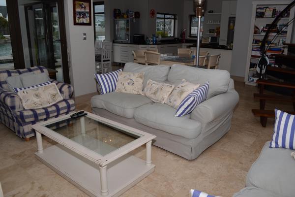 This semi-detached home is part of a shared property and is comfortable with a no fuss atmosphere. Perfectly situated on one of the main canals, ensuring you won't miss any of the action. With large windows facing the Canals, it offers beautiful views and lots of light. There are sliding doors that open up onto a covered veranda with build in braai and stacker doors to a wooden deck that goes down to the jetty and small beach. It has an open plan lounge, dining room and kitchen with a separate small scullery area.