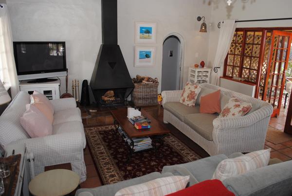 The main bedroom can be found in a separate wing to the other two bedrooms, it offers views of the garden and an en-suite bathroom with a shower, basin and toilet. The other two bedrooms can be found after the lounge, the one has a double bed, built in cupboards and a door leading to the garden. The other offers a single bed and built in cupboards. They both share a full bathroom in between them. The separate garden flatlet has a deck and a bathroom with shower, there is ample sleeping space making it the perfect place for the kids to pile in.