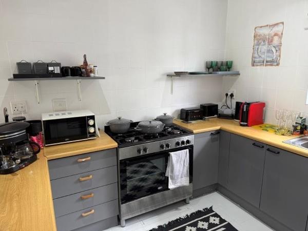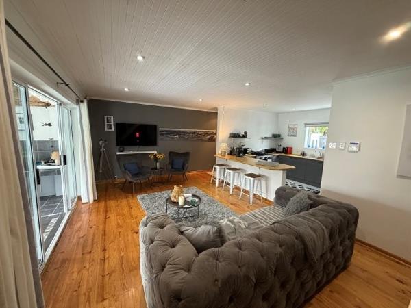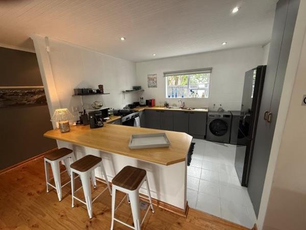 Step inside to open-plan living areas where the kitchen (with dishwasher and washing machine) and lounge flow effortlessly to the enclosed and protected braai room the perfect all-weather entertainment space with dining and braai facilities. From here, doors open to the large enclosed garden and swimming pool, complete with loungers, seating, and an umbrella for lazy summer afternoons.