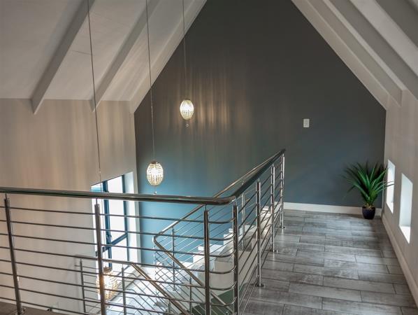 Open-plan living area seamlessly connected to a modern, well-equipped kitchen with a separate scullery.