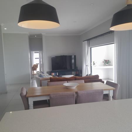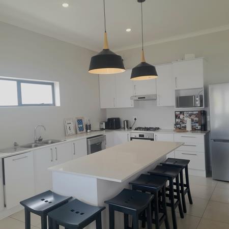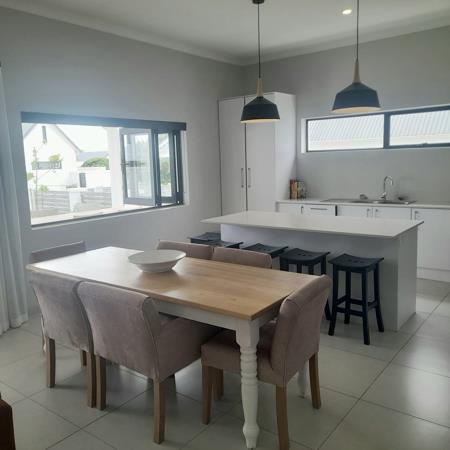 From the moment you step inside, youll feel an overwhelming sense of calm and relaxation. The open-plan living area seamlessly flows into a modern kitchen, and thanks to expansive stacker doors, you can step out onto the front entertaining and braai area with ease. This setup brings the outdoors in, allowing you to fully immerse yourself in the festive, coastal air.