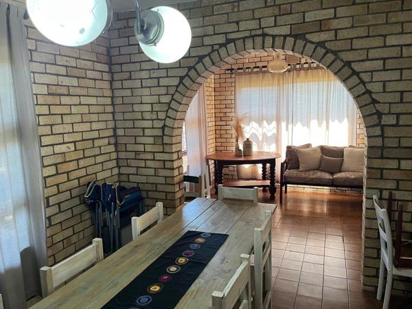A lovely home for a holiday for a single couple (price can be negotiated), 2 couples or a small family! There are two bedrooms, both with queen sized beds, and a fold out double couch in the lounge. The lounge is spacious and has the benefit of a TV for those rainy and windy days. The dining room has a long table to host evening dinners and opens onto a stoep at the back with a built in braai. The kitchen is newly updated and works perfectly and in harmony with the dining room and lounge.