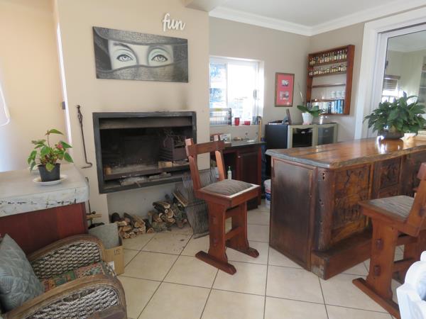 Enjoy the outdoors with a covered patio and built-in braai, leading out to the pool, lawn area, and private jetty.