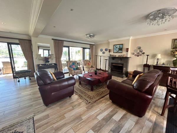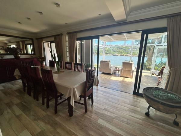 Stunning and Well-Maintained 5 Bedroom home for Holiday Rental on the Main River of the Kowie in The Royal Alfred Marina. Set within the well-established Royal Alfred Marina, this double storey home boasts serenity, modernity and exclusivity. Its aesthetically pleasing exterior welcomes you indoors through a double volume entrance hall, leading the way through spacious ground floor living opening outwards onto a secluded courtyard with swimming pool and braai facilities, as well as luscious lawns along the waters edge.