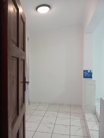 Spacious bedroom with built-in cupboards and en-suite shower, basin & toilet