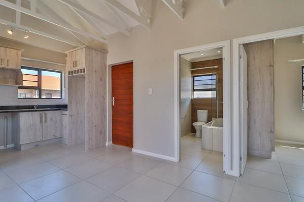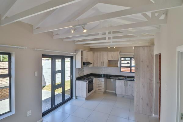 This beautiful home offers a lovely open plan kitchen and lounge that leads to an undercover chimney braai area through an aluminum glass stacker door. This home offers modern exposed trusses in the living area a parking area and a full lawn. The kitchen consists of granite counter tops, an electrical oven and hob, stunning built-in cupboards and a microwave unit.