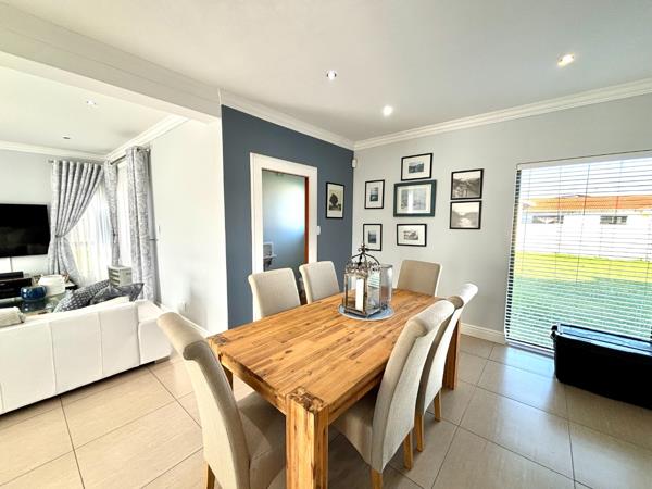 Discover modern living in this Port Elizabeth residence, located in Fairview, a well-established suburban area offering convenience and community. This contemporary multi-story home features an inviting open-plan layout, seamlessly connecting the lounge, dining area, and a stylish kitchen. The kitchen boasts white cabinetry, sleek dark countertops, a vibrant turquoise subway tile backsplash, stainless steel appliances, and a practical scullery, perfect for culinary enthusiasts. The home offers three comfortable bedrooms and three bathrooms, including one en-suite, alongside a dedicated family TV room and a guest toilet. Enjoy outdoor moments on the balcony or entertain with the built-in braai. Security is enhanced with electric fencing, burglar bars, and security gates, providing peace of mind. Additional features include a double integrated garage, laundry facilities, and a paved driveway. This property is ideal for those seeking a modern, secure, and functional rental home.