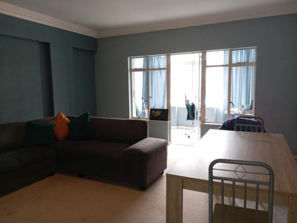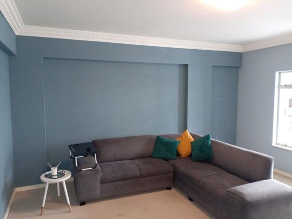 Discover comfortable living in this well-appointed 2-bedroom, 2-bathroom apartment located within the ARUSHA complex in Humewood, Port Elizabeth. This rental unit offers a practical layout designed for modern convenience. The spacious lounge area benefits from abundant natural light streaming through large windows, complemented by elegant crown molding, creating an inviting atmosphere. The functional kitchen features ample white cabinetry with wood trim, integrated oven, hob, and extractor fan, alongside generous counter space, making meal preparation a breeze. A dedicated laundry facility within the unit adds to the convenience.