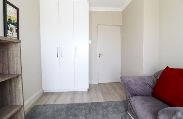 Enclosed back garden with patio and built-in braai perfect for entertaining