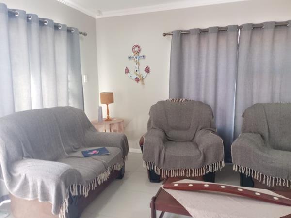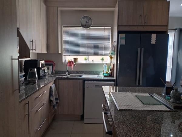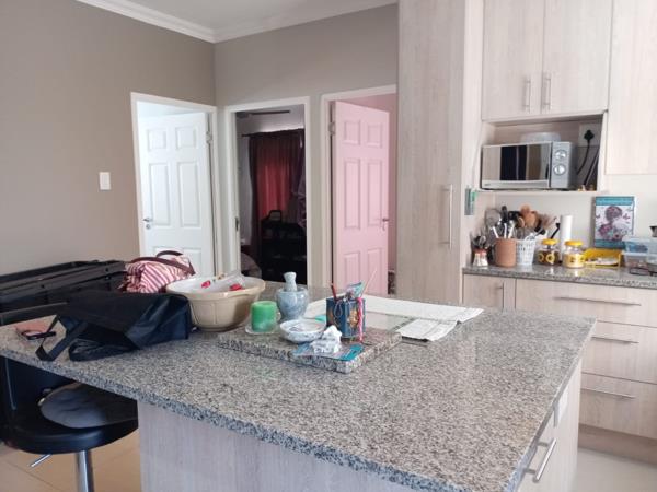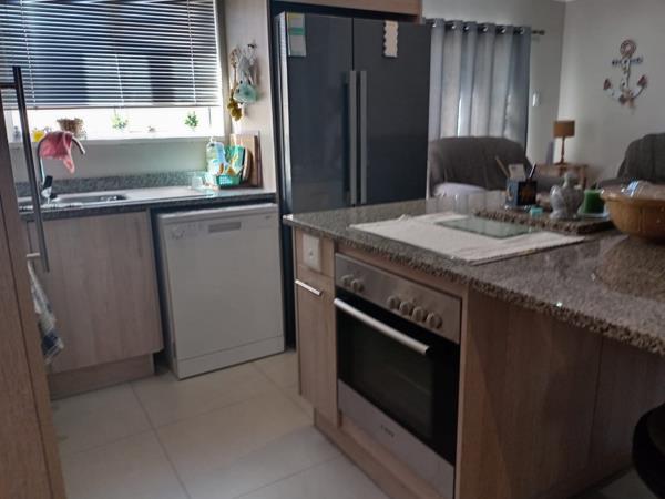 This inviting 3-bedroom, 2-bathroom rental property offers comfortable living within a secure complex in Westbrook, Port Elizabeth. The home features an open-plan layout, seamlessly connecting the living spaces. The modern kitchen is a highlight, boasting light-colored cabinetry, granite countertops, and a practical central island. The lounge and dining areas are finished with durable tiled flooring and neutral walls, benefiting from ample natural light through large windows and sliding doors that lead to the outdoor space.