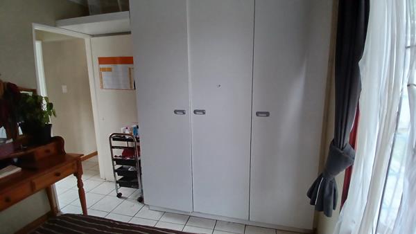 There are 2 bedrooms, both with built in cupboards.