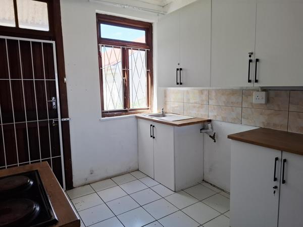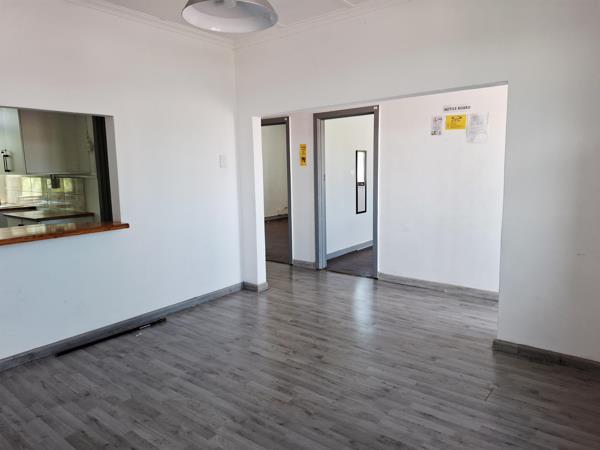 The flat features two bedrooms with built-in cupboards, a neat kitchen with ample cupboard space, and an oven and hob. The large living room provides plenty of space for relaxation and entertaining, while the passage offers additional storage with built-in linen cupboards.