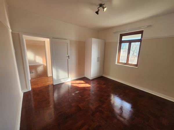 A SPACIOUS BEDROOM WITH BUILT IN CUPBOARDS AND BEAUTIFULL WOODEN FLOORS.