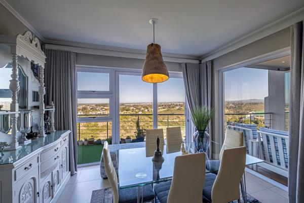 LUXURIOUS PENTHOUSE WITH SPECTACULAR VALLEY VIEWS Available to rent immediately . Ultra-luxurious, this 267 sqm apartment offers an exclusive city lifestyle against a backdrop of breathtaking valley views. The lower level consists of a glass entryway, accessed by facial recognition. Then the unit unfolds into a series of curated open-plan living spaces with banks of frameless stacker doors that frame the panorama beyond. The lounge and dining room lead out to a covered balcony on one side on the opposite side is a modern glossy kitchen with a connecting breakfast bar. Fitted with a glass hob, extractor fan, and under-counter oven, it has space for a double-door fridge and eye-catching glass splashbacks depicting the New York City skyline. Also on this level are a scullery/laundry, two spacious bedrooms with beautiful en suite bathrooms, and a guest cloakroom.