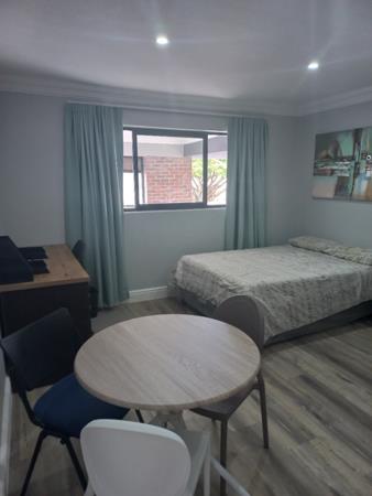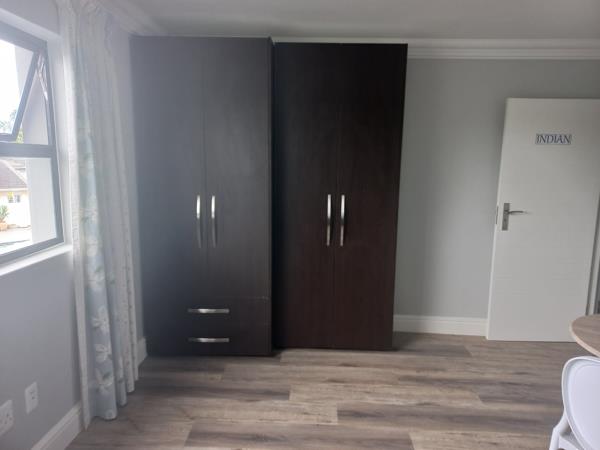 This modern student accommodation in Summerstrand is for 4 ladies only. The versatile layout provides a dedicated bedroom, furnished with a bed as well as a desk for study, ideal for focused academic pursuits and relaxed living. Ample storage is available with large, dark-wood wardrobes, ensuring a clutter-free environment, alongside access to a communal kitchen facility. There are 2 communal bathrooms, for the 4 ladies to share.