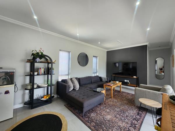 I would like to present a charming two-bedroom house available for rent within the Wedgewood Golf & Country Estate. This residence features an open-plan kitchen seamlessly integrated with a spacious living and dining area, complete with a built-in braai. The dining area extends to a garden through sliding patio doors, ideal for enjoying summer evenings.
