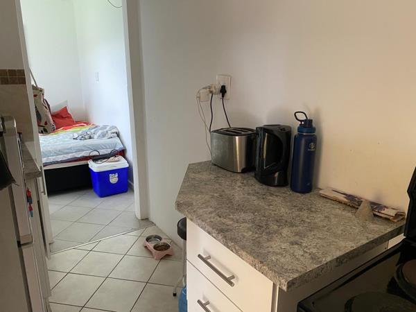 This is a furnished property and it offers 1 bedroom with tiled floors and built in cupboards, a bathroom with a shower, toilet and basin and a kitchen.