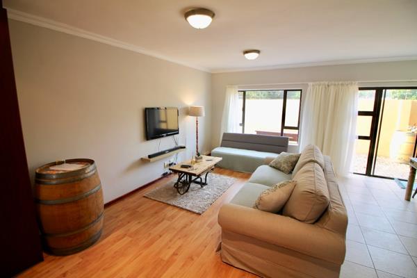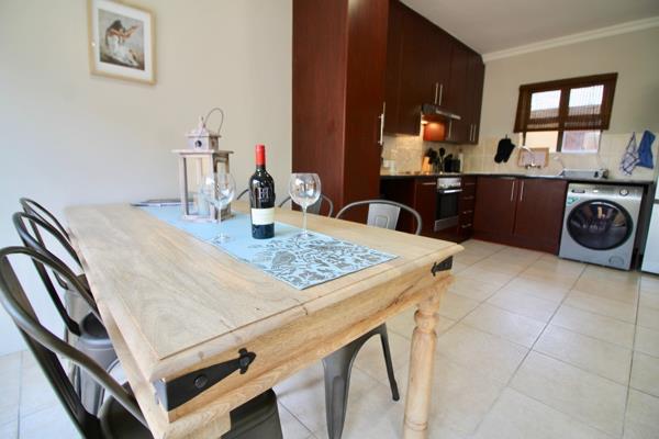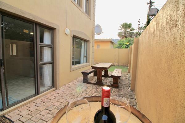 Youll absolutely love the private paved patio right off the living area. It comes with a built-in braai and a wooden picnic table, ready for all your outdoor entertaining and sunny South African afternoons. Plus, theres a small, neat patch of lawn for a touch of green. The bedrooms are cozy, with the main one boasting a built-in dark wood wardrobe and a dedicated desk area, ideal for working from home or as a vanity.