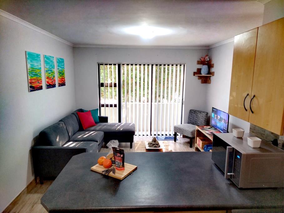 The apartment is situated on the first floor of the well known Boneyard apartment block and consists of 2 bedrooms with build in cupboards, a newly renovated modern bathroom with shower, toilet and basin and an open plan living area with a neat kitchen, with a gas oven stove.